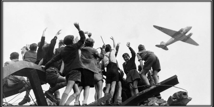 German kids waiving at an American Berlin Airlift aircraft. Public domain.