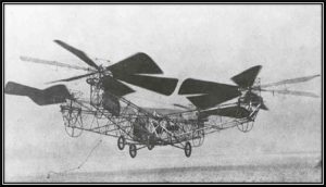 According to Wikipedia, “The de Bothezat helicopter, also known as the Jerome-de Bothezat Flying Octopus, was an experimental quadrotor helicopter built for the United States Army Air Service by George de Bothezat in the early 1920s, and was said at the time to be the first successful helicopter. Although its four massive six-bladed rotors allowed the craft to fly successfully, it suffered from complexity, control difficulties, and high pilot workload, and was reportedly only capable of forward flight in a favorable wind. The Army canceled the program in 1924, and the aircraft was scrapped.