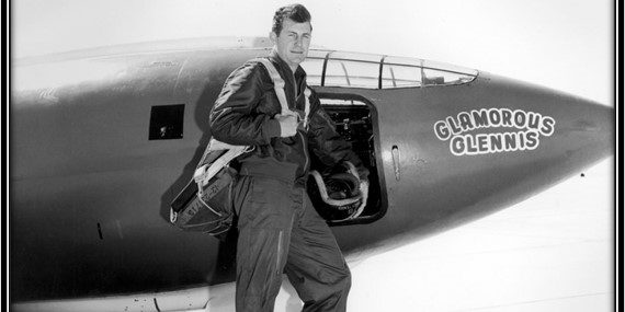 From History.com: “Yeager, born in Myra, West Virginia, in 1923, was a combat fighter during World War II and flew 64 missions over Europe. He shot down 13 German planes and was himself shot down over France, but he escaped capture with the assistance of the French Underground. After the war, he was among several volunteers chosen to test-fly the experimental X-1 rocket plane, built by the Bell Aircraft Company to explore the possibility of supersonic flight.