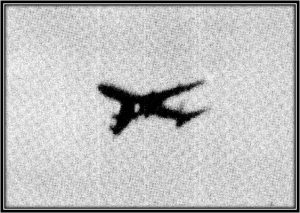 A photo of Japan Airlines Flight 123 flying over Okutama, from a report published by the JTSB (62-2-JA8119 Japan Airlines Co., Ltd. Boeing 747SR-100 JA8119 Ueno Village, Tano District, Gunma Prefecture) on 12 Aug 1985.