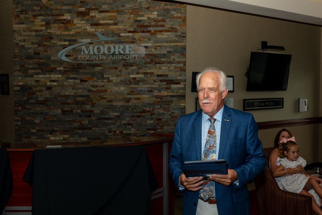 “Four times the manager of this airport. Ron grew up in Moore County and had his first flight at this airport. He flew with the USAF Thunderbirds, and was an instructor, a captain, and test pilot for USAir (now American Airlines). His service and commitment to this airport are second to none.