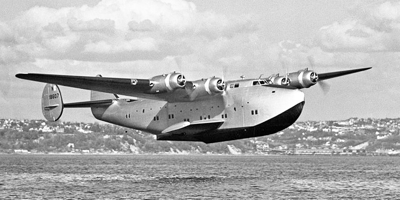 A Boeing 314 “Clipper” in flight. This Boeing 314 (c/n 2081; US civil registration NC18607) was built for the British Overseas Airways Corporation (BOAC) and served with the UK registration G-AGBZ from 1941 to 1948. It was sold to the General Phoenix Corporation, Baltimore, Maryland (USA), as NC18607 in 1948 and later scrapped. Courtesy Boeing.