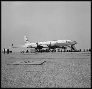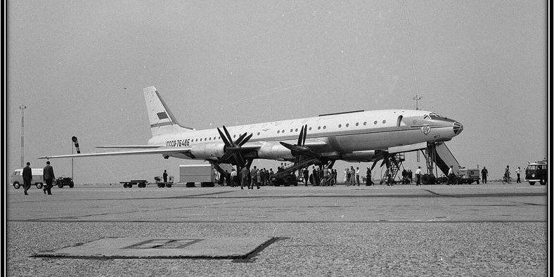 The Tupolev 114 at Schiphol, Netherlands, in 1964. Photo Hugo van Gelderen / Anefo / Wikipedia